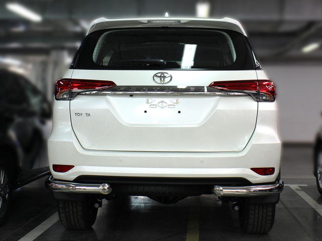 Защита заднего бампера уголки одинарные на Toyota Fortuner 2017 (Тойота Фортунер 2017) изготовлена компанией Технотек из высококачественной нержавеющей стали, труба имеет диаметр 76 мм. В комплекте поставляется набор крепежа и инструкция по установке.