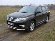 Пороги для Toyota Highlander 2010 изготовлены из высококачественной нержавеющей стали марки AISI 304, труба имеет диаметр 75/42 мм.