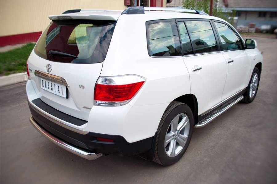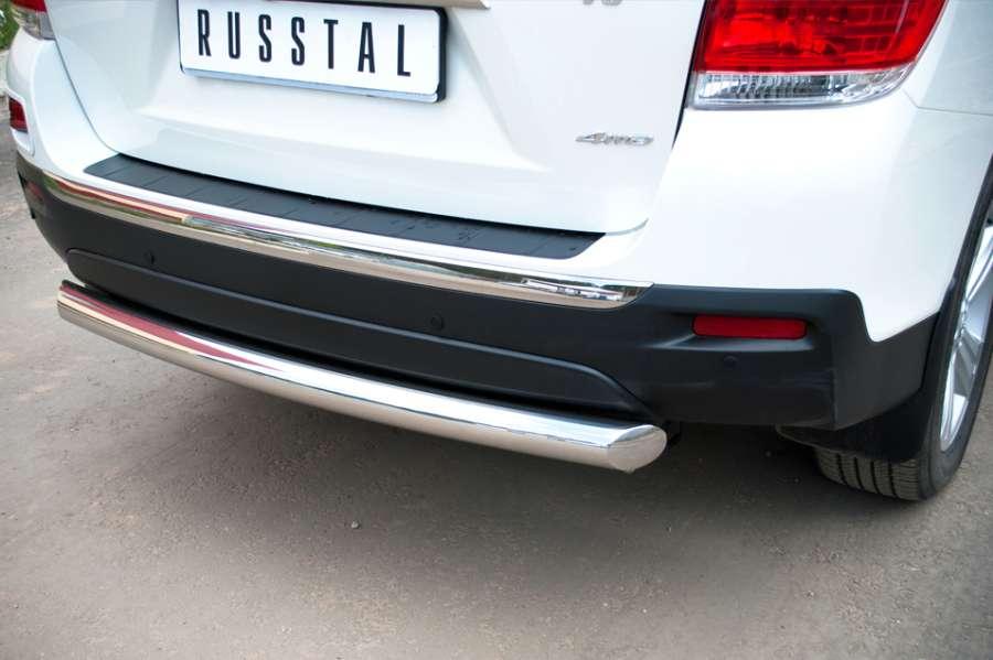 Защита заднего бампера для Toyota Highlander 2010 изготовлена из высококачественной нержавеющей стали марки AISI 304, труба имеет диаметр 76 мм.