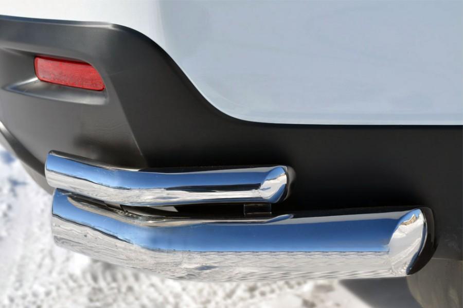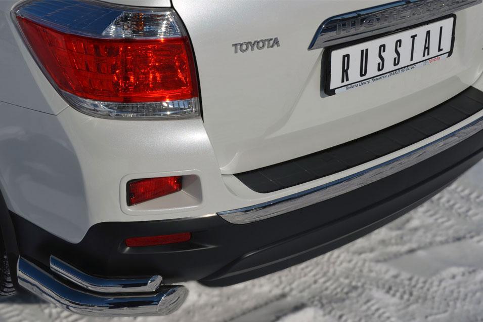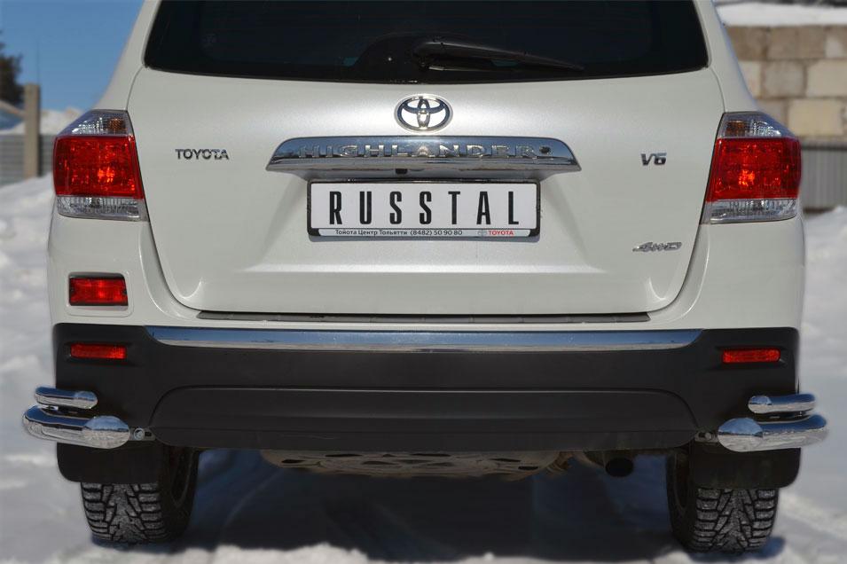Защита заднего бампера для Toyota Highlander 2010 изготовлена из высококачественной нержавеющей стали марки AISI 304. 76/42 мм.