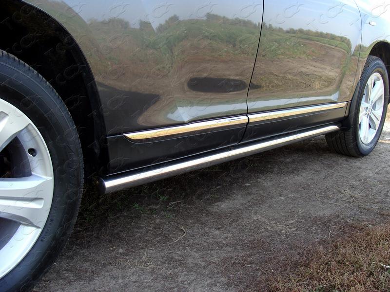 Пороги труба 60,3 мм для автомобиля Toyota Highlander 2010-2013 представляет собой элемент тюнинга и защиты автомобиля и производится специально для данной модели. Данное изделие изготавливается из нержавеющей стали и полируется вручную, что обеспечивает сохранение отличного внешнего вида в течение длительного времени в наших непростых климатических условиях. Срок поставки продукции производства компании TCC Тюнинг составляет 1-5 дней. Установить Пороги труба 60,3 мм для автомобиля Toyota Highlander 2010-2013 можно на нашем сервисе, предварительно записавшись по телефону.