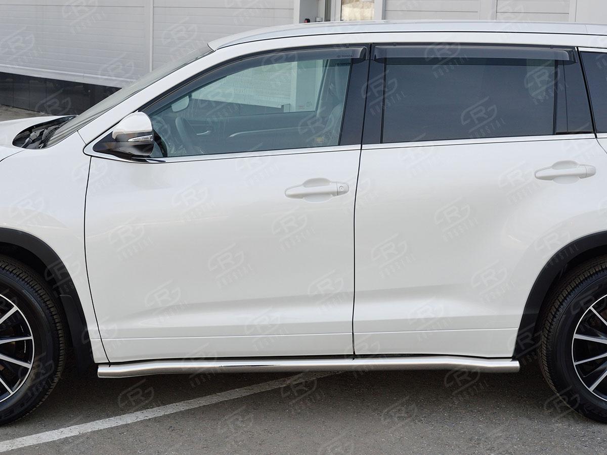 Пороги защитные вариант 3 Русcталь для Toyota Highlander 2016 (Тойота Хайлендер 2016) THRT-002623 изготовлены из высококачественной нержавеющей стали марки AISI 304, она также называется пищевая нержавейка. Труба имеет диаметр 57 мм.