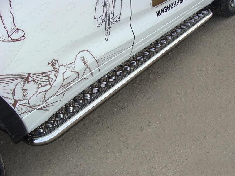 Пороги с площадкой 42,4 мм для автомобиля Toyota Highlander 2017- представляет собой элемент тюнинга и защиты автомобиля и производится специально для данной модели. Данное изделие изготавливается из нержавеющей стали и полируется вручную, что обеспечивает сохранение отличного внешнего вида в течение длительного времени в наших непростых климатических условиях. Срок поставки продукции производства компании TCC Тюнинг составляет 1-5 дней. Установить Пороги с площадкой 42,4 мм для автомобиля Toyota Highlander 2017- можно на нашем сервисе, предварительно записавшись по телефону.