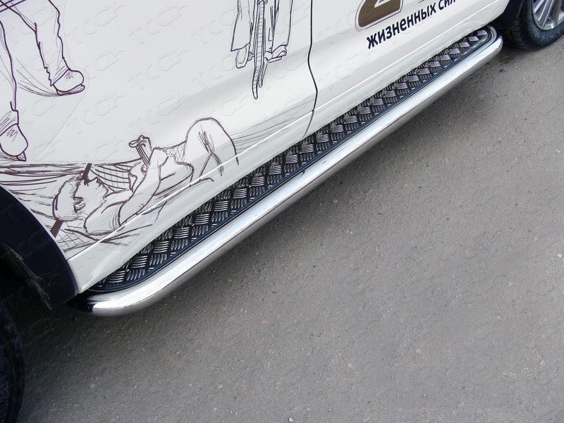 Пороги с площадкой 60,3 мм для автомобиля Toyota Highlander 2017- представляет собой элемент тюнинга и защиты автомобиля и производится специально для данной модели. Данное изделие изготавливается из нержавеющей стали и полируется вручную, что обеспечивает сохранение отличного внешнего вида в течение длительного времени в наших непростых климатических условиях. Срок поставки продукции производства компании TCC Тюнинг составляет 1-5 дней. Установить Пороги с площадкой 60,3 мм для автомобиля Toyota Highlander 2017- можно на нашем сервисе, предварительно записавшись по телефону.