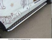 Пороги с площадкой (нерж. лист) 75х42 мм для автомобиля Toyota Highlander 2017- представляет собой элемент тюнинга и защиты автомобиля и производится специально для данной модели. Данное изделие изготавливается из нержавеющей стали и полируется вручную, что обеспечивает сохранение отличного внешнего вида в течение длительного времени в наших непростых климатических условиях. Срок поставки продукции производства компании TCC Тюнинг составляет 1-5 дней. Установить Пороги с площадкой (нерж. лист) 75х42 мм для автомобиля Toyota Highlander 2017- можно на нашем сервисе, предварительно записавшись по телефону.