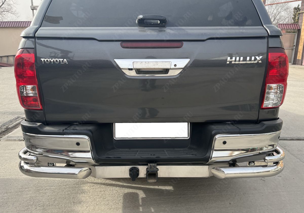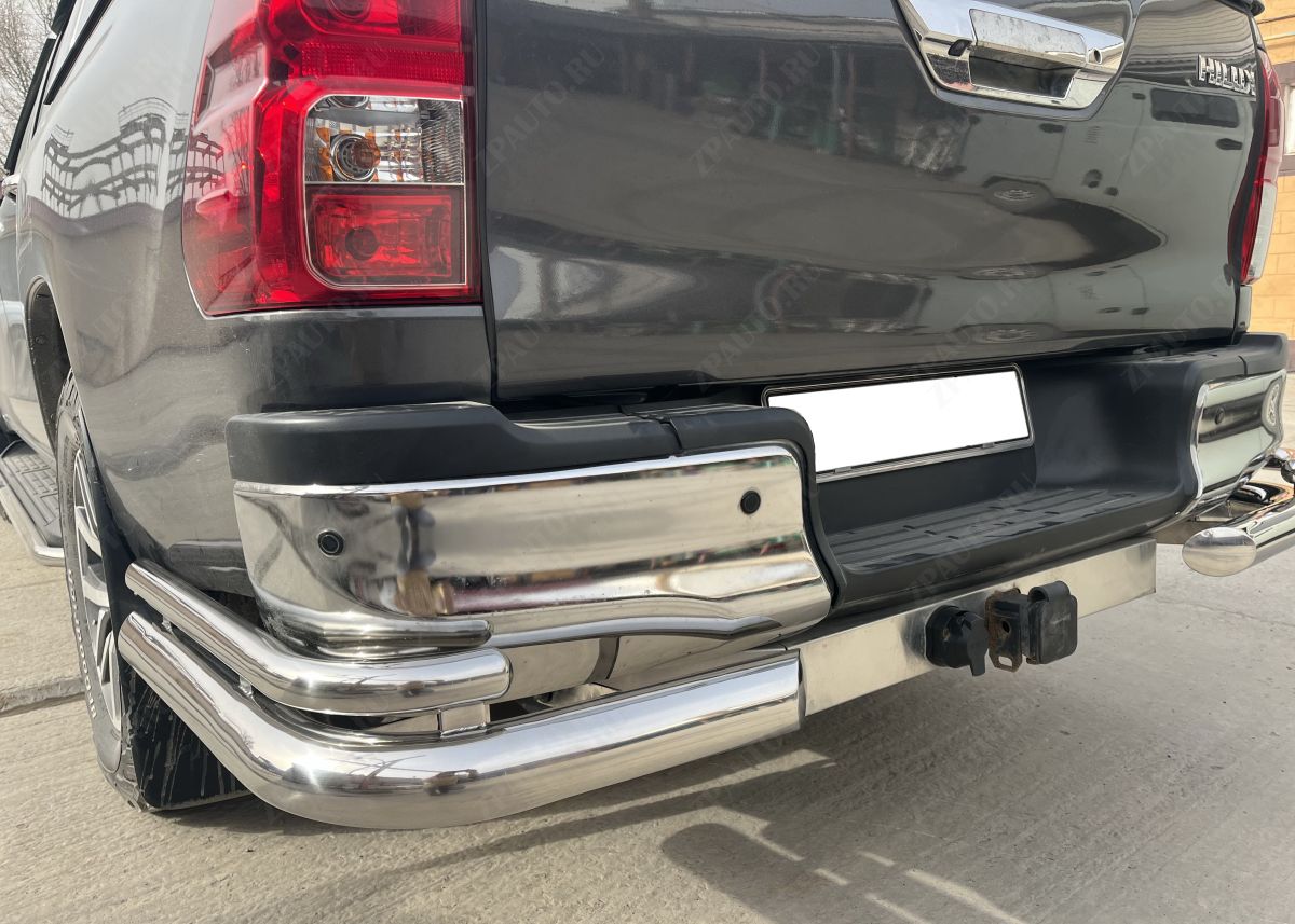 Защита заднего бампера d 76/42 арт. THL.15.20-2 для автомобиля TOYOTA Hilux 2015 - представляет собой элемент тюнинга и защиты автомобиля и производится специально для данной модели. Данное изделие изготавливается из нержавеющей стали и полируется вручную, что обеспечивает сохранение отличного внешнего вида в течение длительного времени в наших непростых климатических условиях. Срок поставки составляет 1-5 дней. Установить деталь Защита заднего бампера d 76/42 арт. THL.15.20-2 для автомобиля TOYOTA Hilux 2015 можно на нашем сервисе, предварительно записавшись по телефону.
