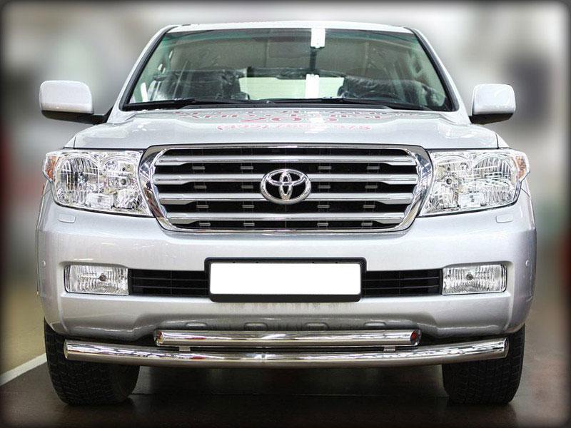 Дуга передняя по низу бампера d76+60 радиусная двойная (верхняя дуга укороченная) для Toyota Land Cruiser 100, Технотек LC_5.1 изготовлена из высококачественной нержавеющей стали, труба имеет диаметр 76/60 мм. В комплекте поставляется набор крепежа и инструкция по установке.