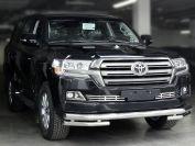 Защита заднего бампера Slitkoff для Toyota Land Cruiser 200 2015 (Тойота Ленд Крузер 200 2015-) TLCZ-002166 изготовлена из высококачественной нержавеющей стали марки AISI 304, труба имеет диаметр 76 мм.