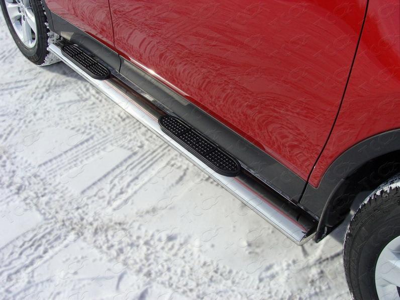 Пороги овальные с накладкой 120х60 мм для автомобиля Toyota RAV4 2013-2015 представляет собой элемент тюнинга и защиты автомобиля и производится специально для данной модели. Данное изделие изготавливается из нержавеющей стали и полируется вручную, что обеспечивает сохранение отличного внешнего вида в течение длительного времени в наших непростых климатических условиях. Срок поставки продукции производства компании TCC Тюнинг составляет 1-5 дней. Установить Пороги овальные с накладкой 120х60 мм для автомобиля Toyota RAV4 2013-2015 можно на нашем сервисе, предварительно записавшись по телефону.