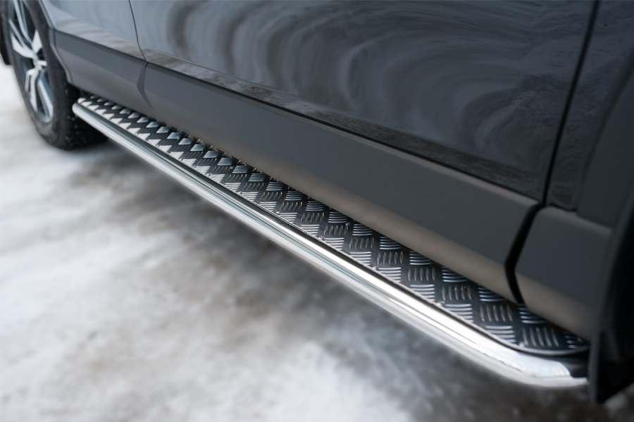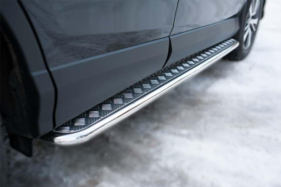 Пороги Slitkoff для Toyota RAV4 2015 (Тойота РАВ4 2015) TR4L-0021992 изготовлены из высококачественной нержавеющей стали марки AISI 304, труба имеет диаметр 42 мм.