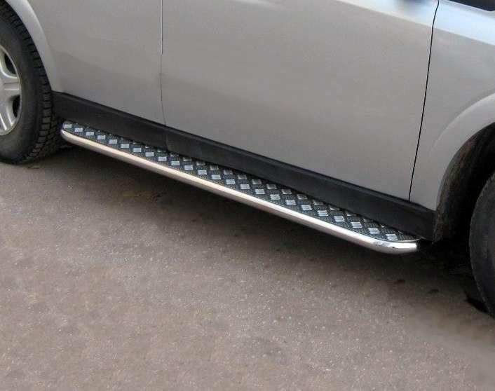 Пороги для Toyota RAV 4 (обычная база) 2010- изготовлены из высококачественной нержавеющей стали марки AISI 304, труба имеет диаметр 42 мм.