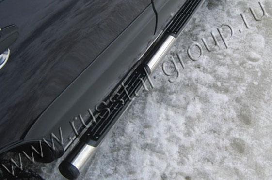 Пороги для Toyota RAV 4 (длинная база) 2009- изготовлены из высококачественной нержавеющей стали марки AISI 304, труба имеет диаметр 76 мм. Торцы труб закрыты пластиковыми заглушками.