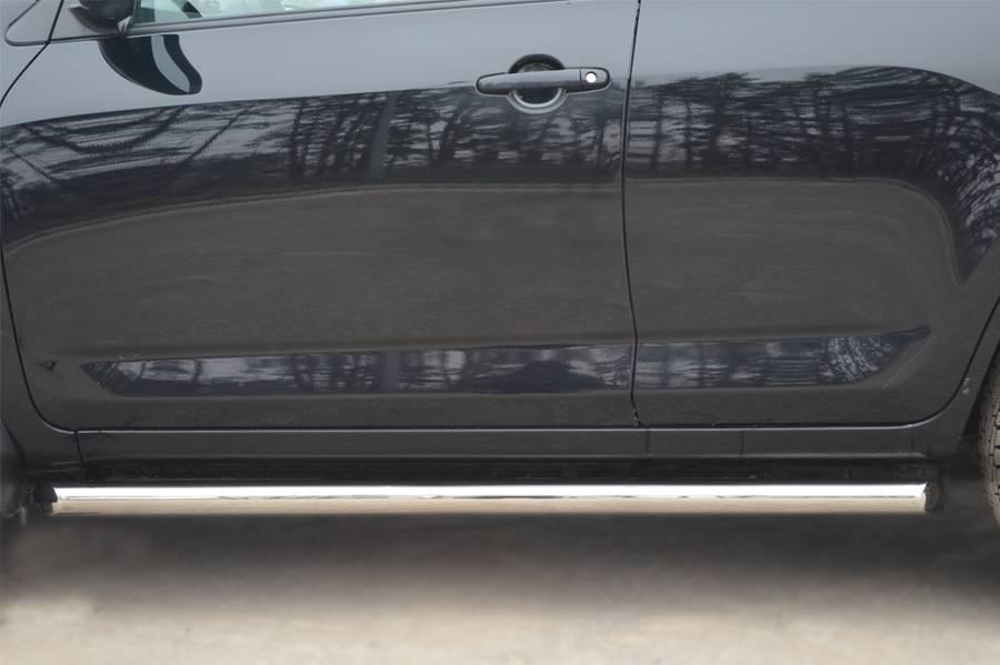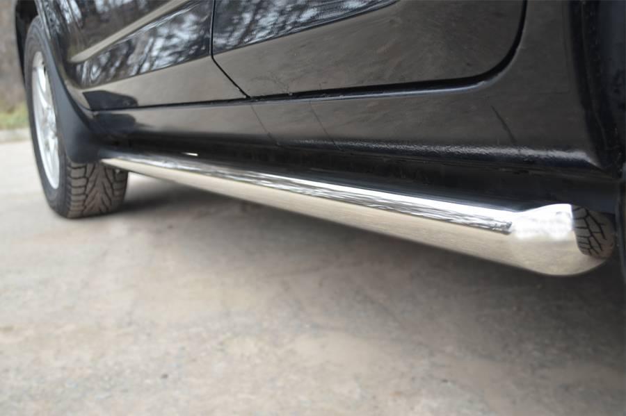 Пороги для Toyota RAV 4 (длинная база) 2010- изготовлены из высококачественной нержавеющей стали марки AISI 304, труба имеет диаметр 57 мм. Торцы труб скошены под 45 градусов.