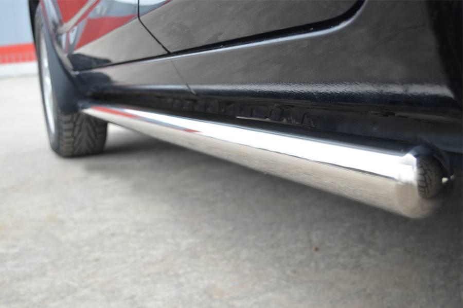 Пороги для Toyota RAV 4 (длинная база) 2010- изготовлены из высококачественной нержавеющей стали марки AISI 304, труба имеет диаметр 76 мм. Торцы труб выполнены в виде полусферы.