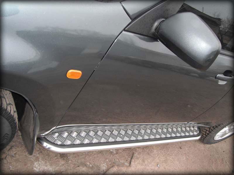 Пороги с листом d43 для Toyota RAV4 2009-2012, Технотек TRN10_5.1 изготовлены из высококачественной нержавеющей стали, труба имеет диаметр 43 мм. В комплекте поставляется набор крепежа и инструкция по установке.