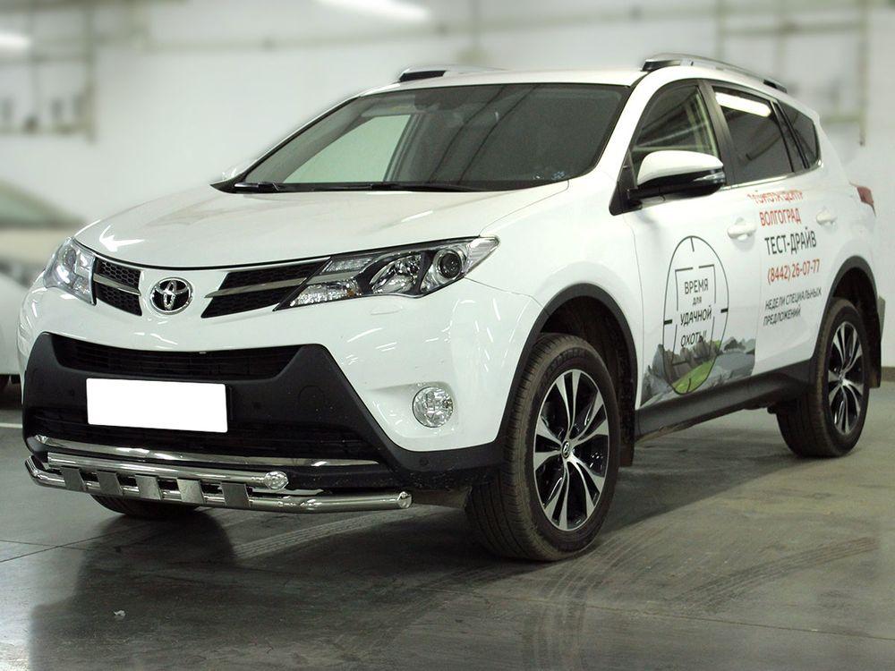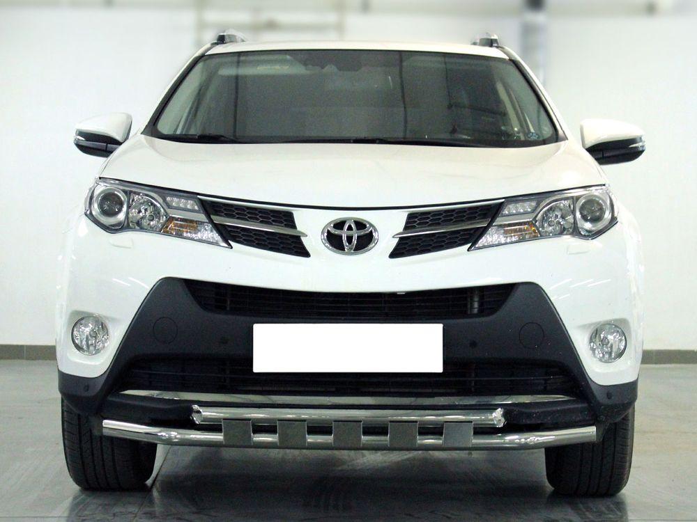 Защита переднего бампера d53+53 с доп.накладками (квадратные) для Toyota RAV4 2012, Технотек TRN13_1.5 изготовлена из высококачественной нержавеющей стали, труба имеет диаметр 53/53 мм. В комплекте поставляется набор крепежа и инструкция по установке.