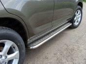 Защита переднего бампера d60 с доп.накладками для Toyota RAV4 2012, Технотек TRN13_1.7 изготовлена из высококачественной нержавеющей стали, труба имеет диаметр 60 мм. В комплекте поставляется набор крепежа и инструкция по установке.
