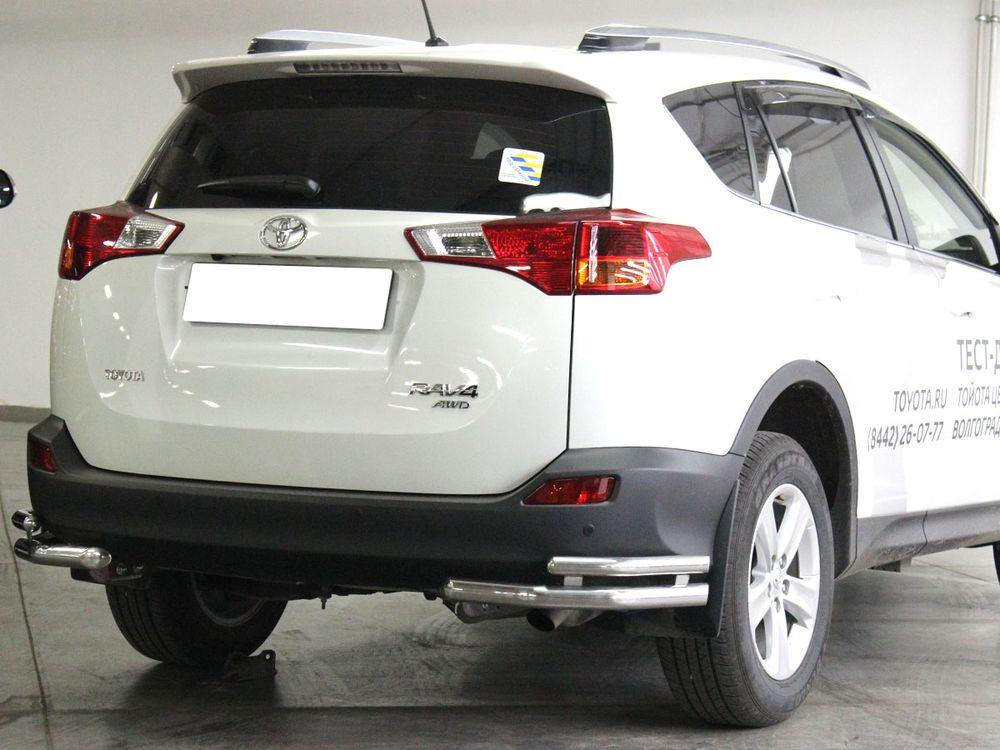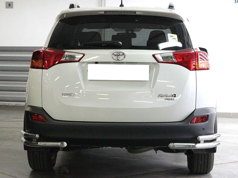 Защита заднего бампера уголки d53+43 для Toyota RAV4 2012, Технотек TRN13_3.5 изготовлена из высококачественной нержавеющей стали, труба имеет диаметр 53/43 мм. В комплекте поставляется набор крепежа и инструкция по установке.