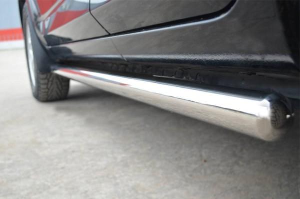 Пороги для Toyota RAV 4 (обычная база) 2010- изготовлены из высококачественной нержавеющей стали марки AISI 304, труба имеет диаметр 57 мм. Торцы труб выполнены в виде полусферы.