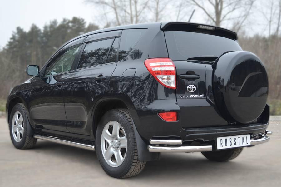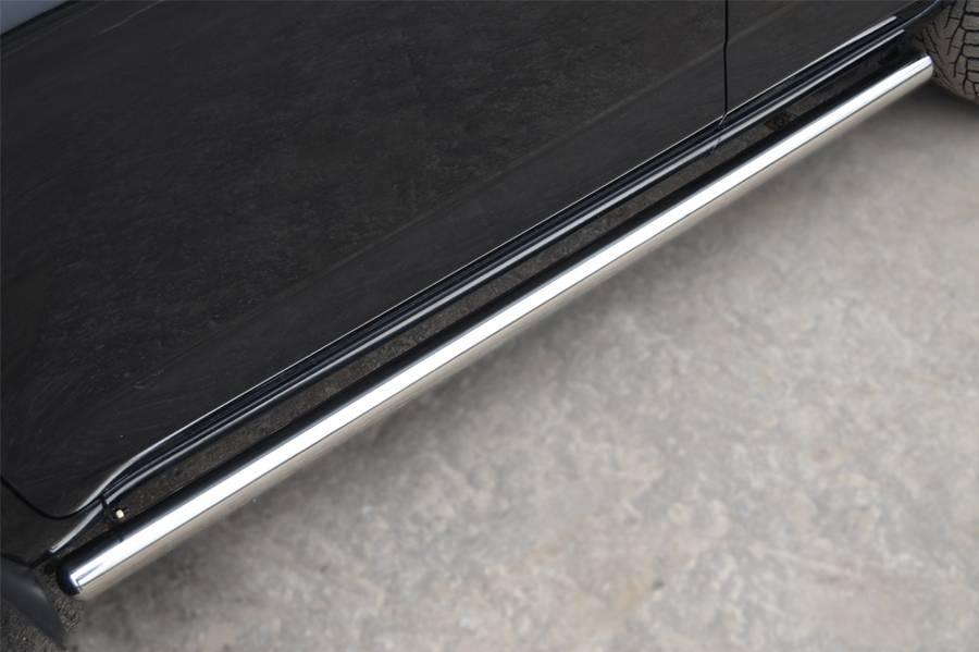 Пороги для Toyota RAV 4 (обычная база) 2010- изготовлены из высококачественной нержавеющей стали марки AISI 304, труба имеет диаметр 76 мм. Торцы труб выполнены в виде полусферы.