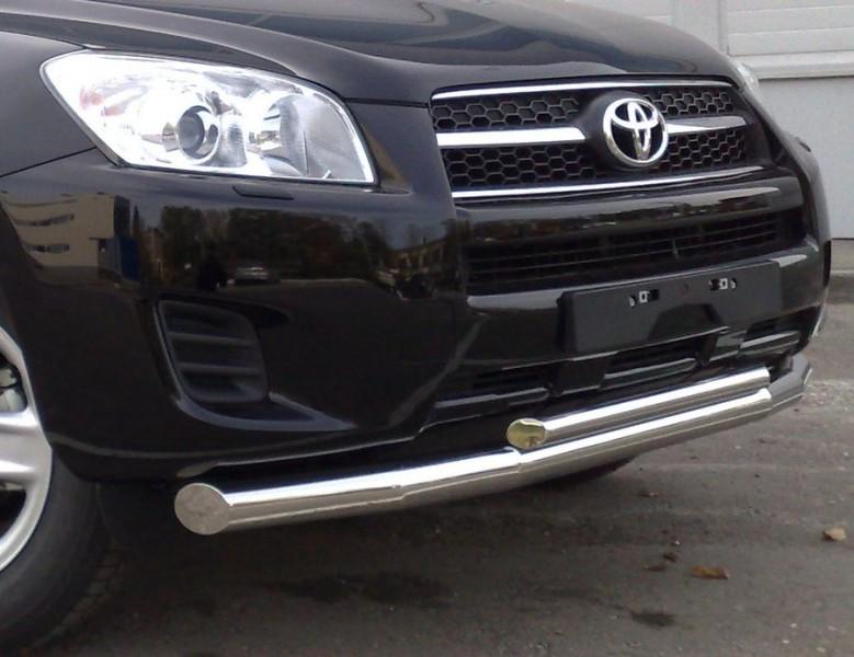 Защита переднего бампера для Toyota RAV 4 (обычная база) 2009- изготовлена из высококачественной нержавеющей стали марки AISI 304, труба имеет диаметр 76/42 мм.