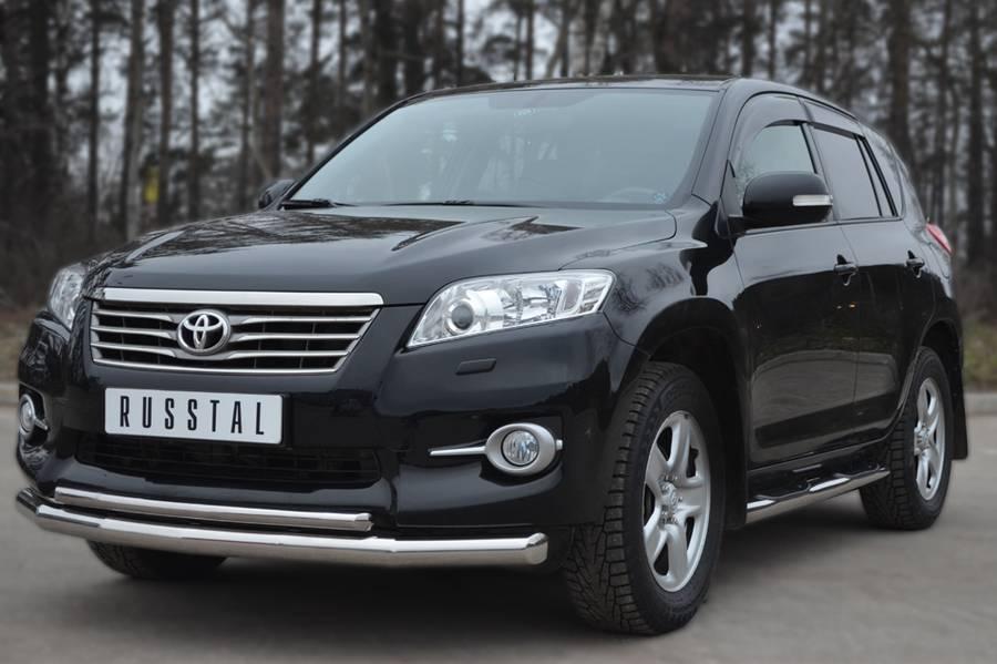 Защита переднего бампера для Toyota RAV 4 (обычная база) 2010- изготовлена из высококачественной нержавеющей стали марки AISI 304, труба имеет диаметр 76/42 мм.