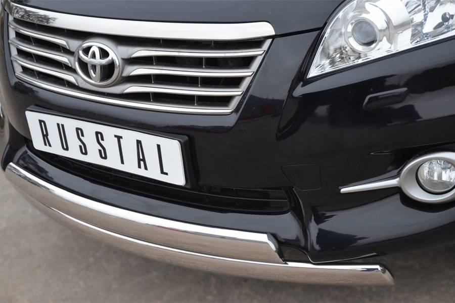 Защита переднего бампера для Toyota RAV 4 (обычная база) 2010- изготовлена из высококачественной нержавеющей стали марки AISI 304, труба имеет диаметр 75/42 мм.