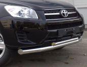 Защита переднего бампера радиусная двойная d53+43 с двумя загибами для Toyota RAV4 2012, Технотек TRN13_1.3 изготовлена из высококачественной нержавеющей стали, труба имеет диаметр 53/43 мм. В комплекте поставляется набор крепежа и инструкция по установке.
