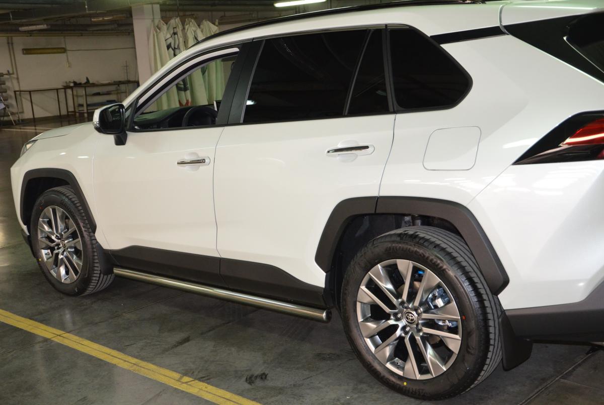 Защита штатного порога d 60 арт. TRAV.19.32 для автомобиля TOYOTA RAV4 2019 - представляет собой элемент тюнинга и защиты автомобиля и производится специально для данной модели. Данное изделие изготавливается из нержавеющей стали и полируется вручную, что обеспечивает сохранение отличного внешнего вида в течение длительного времени в наших непростых климатических условиях. Срок поставки составляет 1-5 дней. Установить деталь Защита штатного порога d60 арт.TRAV.19.32 для автомобиля TOYOTA RAV4 2019 можно на нашем сервисе, предварительно записавшись по телефону.