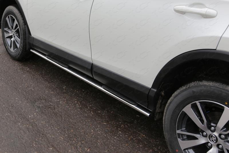 Пороги овальные с накладкой 75х42 мм для автомобиля Toyota RAV4 2015- представляет собой элемент тюнинга и защиты автомобиля и производится специально для данной модели. Данное изделие изготавливается из нержавеющей стали и полируется вручную, что обеспечивает сохранение отличного внешнего вида в течение длительного времени в наших непростых климатических условиях. Срок поставки продукции производства компании TCC Тюнинг составляет 1-5 дней. Установить Пороги овальные с накладкой 75х42 мм для автомобиля Toyota RAV4 2015- можно на нашем сервисе, предварительно записавшись по телефону.