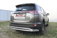Защита переднего бампера d57+d42 двойная серебристая Toyota Rav-4 (2015-2019) , Slitkoff, арт. TR415-001S