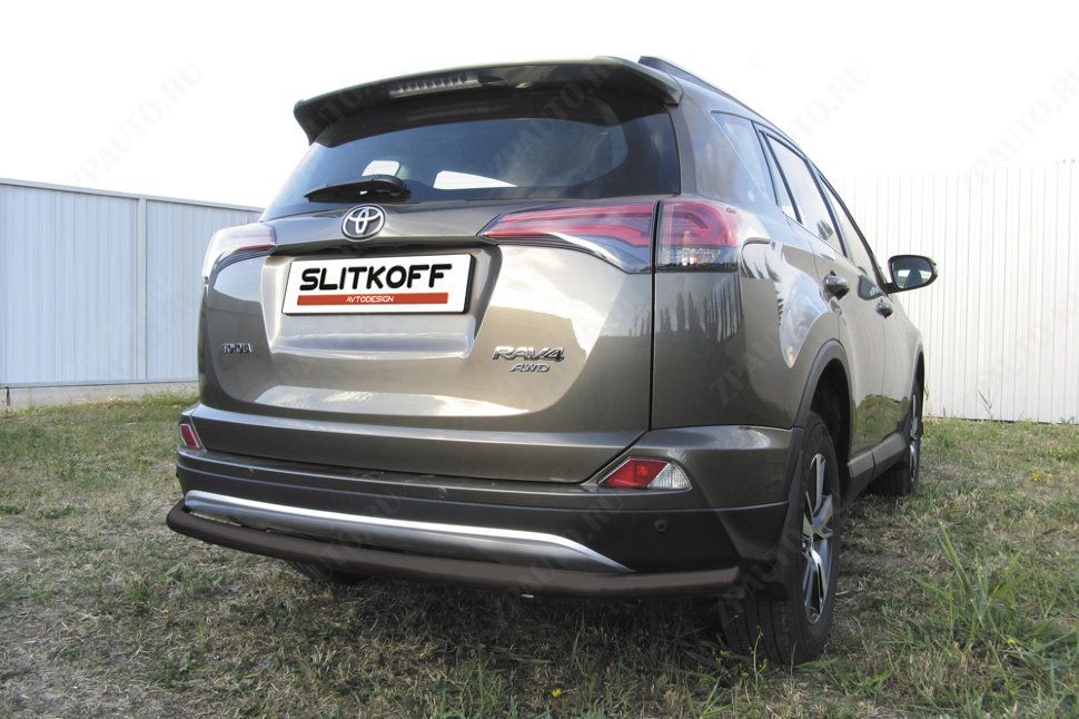 Защита заднего бампера d57 длинная черная Toyota Rav-4 (2015-2019) , Slitkoff, арт. TR415-008B