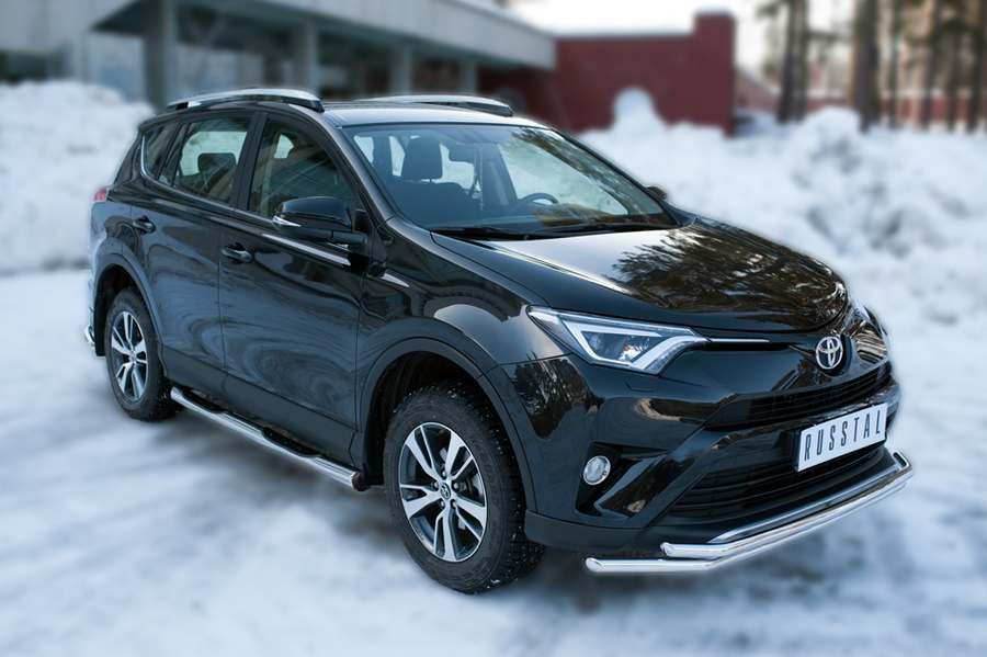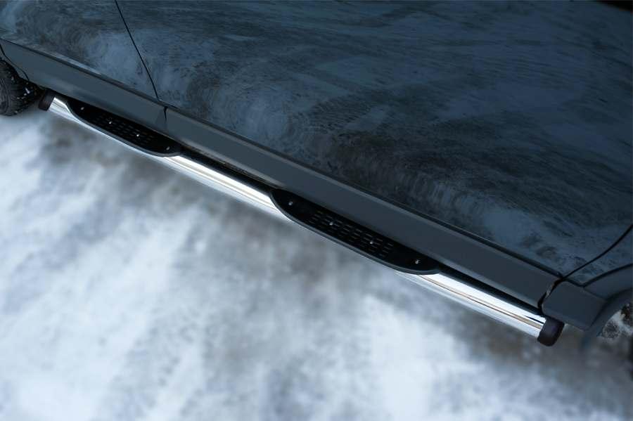 Пороги Slitkoff для Toyota RAV4 2015 (Тойота РАВ4 2015) TR4T-0021962 изготовлены из высококачественной нержавеющей стали марки AISI 304, труба имеет диаметр 76 мм.