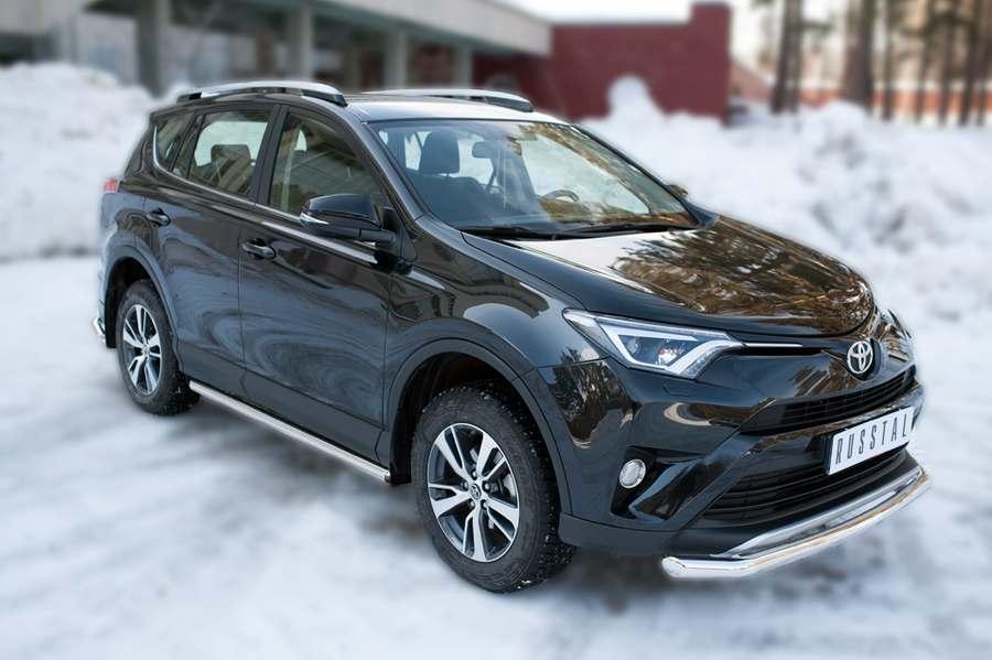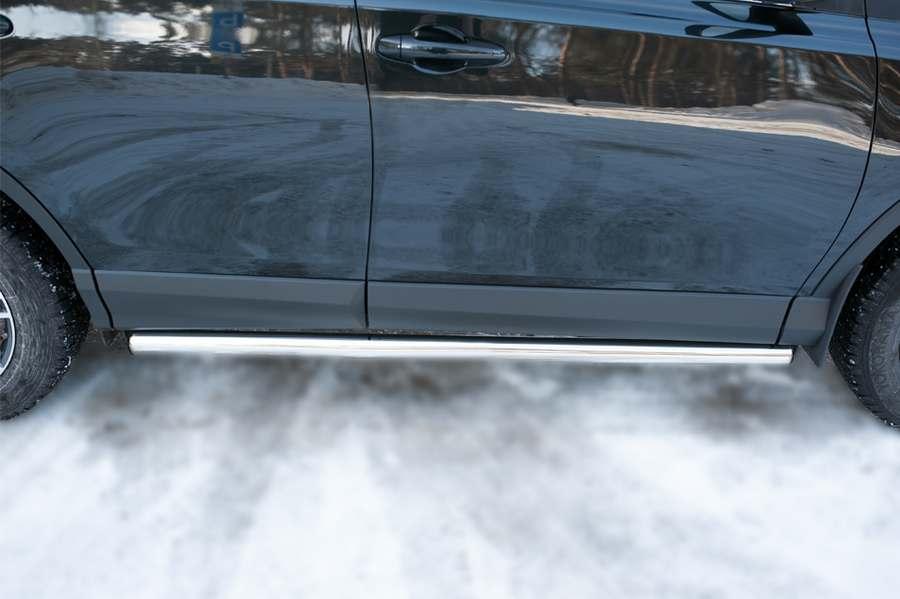 Пороги Slitkoff для Toyota RAV4 2015 (Тойота РАВ4 2015) TR4T-0021972 изготовлены из высококачественной нержавеющей стали марки AISI 304, труба имеет диаметр 57 мм.