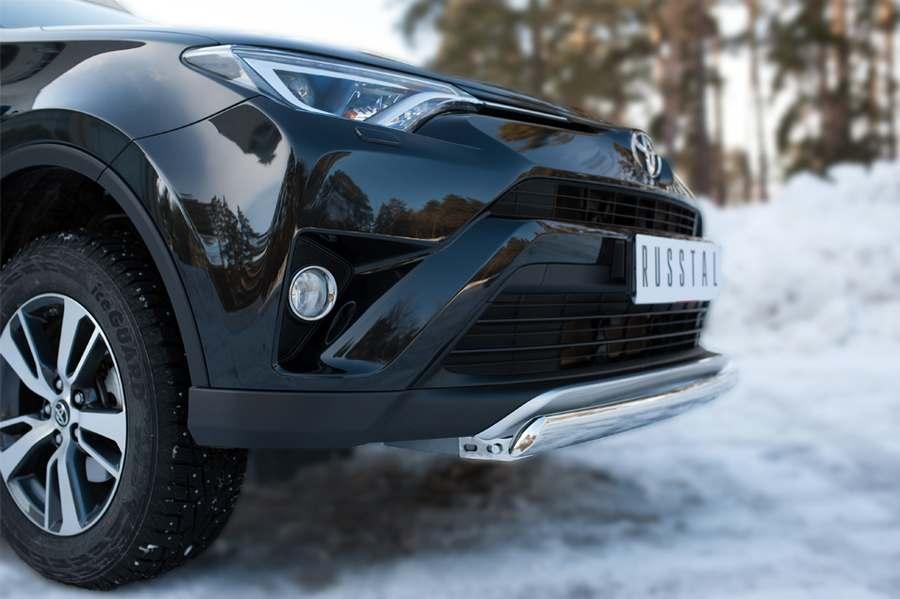 Защита переднего бампера Slitkoff для Toyota RAV4 2015 (Тойота РАВ4 2015) TR4Z-002195 изготовлена из высококачественной нержавеющей стали марки AISI 304, труба имеет диаметр 75x42 мм.