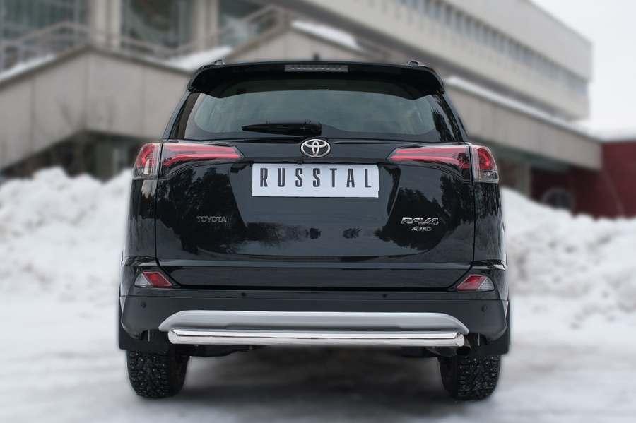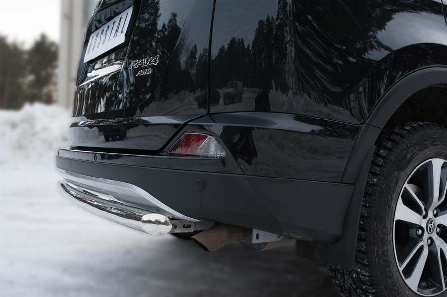 Защита заднего бампера Slitkoff для Toyota RAV4 2015 (Тойота РАВ4 2015) TR4Z-002200 изготовлена из высококачественной нержавеющей стали марки AISI 304, труба имеет диаметр 57 мм.