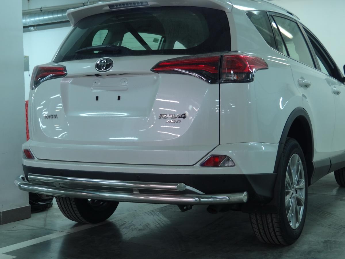 Защита заднего бампера двойная для автомобиля TOYOTA RAV4 2015. TRAV.15.16 представляет собой элемент тюнинга и защиты автомобиля и производится специально для данной модели. Данное изделие изготавливается из нержавеющей стали и полируется вручную, что обеспечивает сохранение отличного внешнего вида в течение длительного времени в наших непростых климатических условиях. Срок поставки продукции производства компании ЮКК Россия составляет 1-5 дней. Установить деталь Защита заднего бампера двойная для автомобиля TOYOTA RAV4 2015. TRAV.15.16 можно на нашем сервисе, предварительно записавшись по телефону.