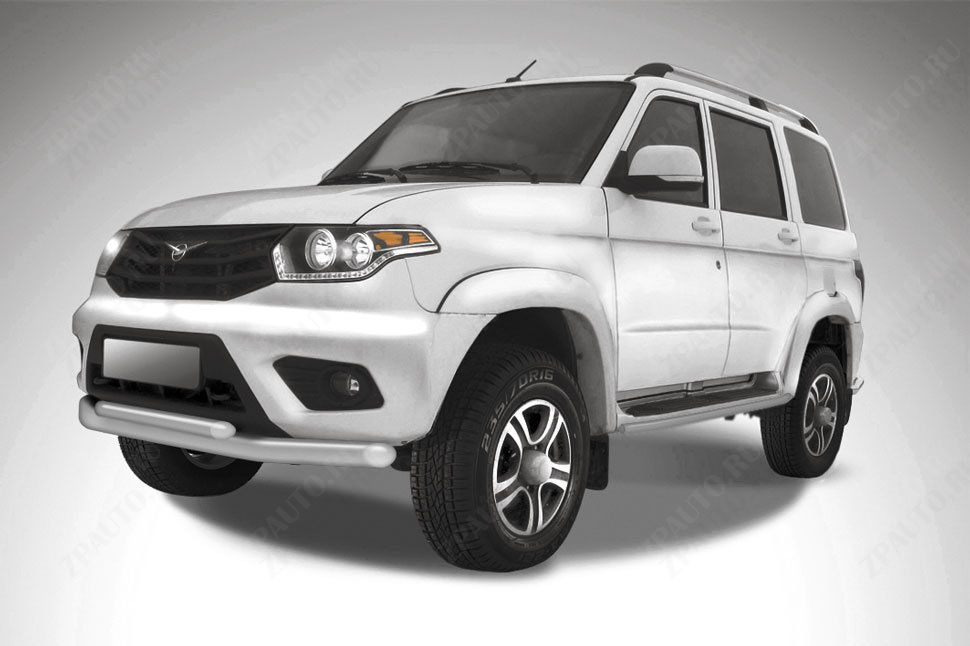 Защита переднего бампера d76+d57 двойная серебристая Uaz Patriot (2014-2023) , Slitkoff, арт. UP14-001S