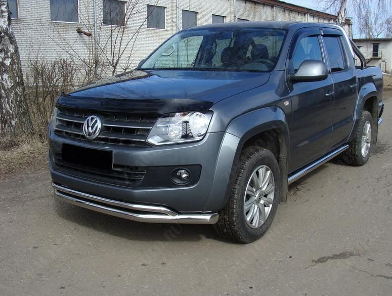 Защита переднего бампера на Volkswagen Amarok (Фольксваген Амарок) устанавливается с помощью прилагающегося набора крепежа в штатные места, дополнительных отверстий в кузове не требуется. Инструкция по установке есть в комплекте. Срок поставки данного изделия 7-10 дней. Записаться на установку в один из наших автосервисов можно по телефону.