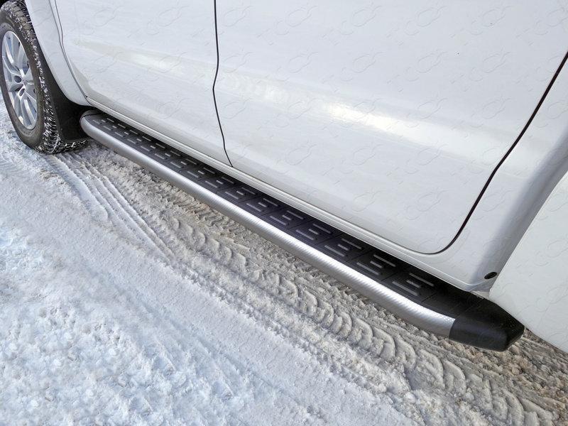 Пороги алюминиевые с пластиковой накладкой (карбон серебро) 1920 мм для автомобиля Volkswagen Amarok 2016- представляет собой элемент тюнинга и защиты автомобиля и производится специально для данной модели. Данное изделие изготавливается из нержавеющей стали и полируется вручную, что обеспечивает сохранение отличного внешнего вида в течение длительного времени в наших непростых климатических условиях. Срок поставки продукции производства компании TCC Тюнинг составляет 1-5 дней. Установить Пороги алюминиевые с пластиковой накладкой (карбон серебро) 1920 мм для автомобиля Volkswagen Amarok 2016- можно на нашем сервисе, предварительно записавшись по телефону.