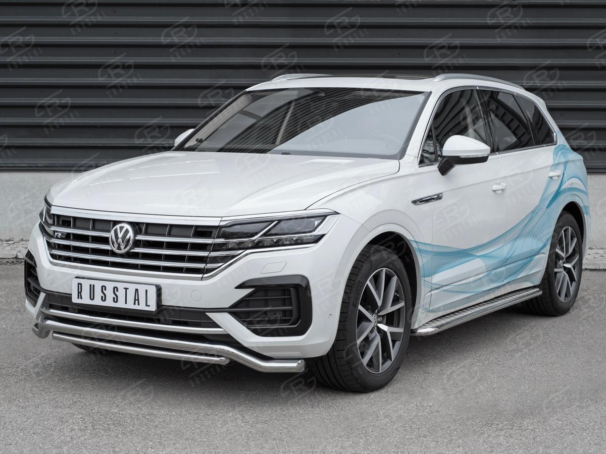 Защита переднего бампера d57 волна-d42 дуга VWTZ-003058 для автомобиля VOLKSWAGEN TOUAREG 2018- представляет собой элемент тюнинга и защиты автомобиля и производится специально для данной модели. Данное изделие изготавливается из нержавеющей стали и полируется вручную, что обеспечивает сохранение отличного внешнего вида в течение длительного времени в наших непростых климатических условиях. Срок поставки продукции производства компании TCC Тюнинг составляет 1-5 дней. Установить деталь Защита переднего бампера d57 волна-d42 дуга VWTZ-003058 для автомобиля VOLKSWAGEN TOUAREG 2018- можно на нашем сервисе, предварительно записавшись по телефону.