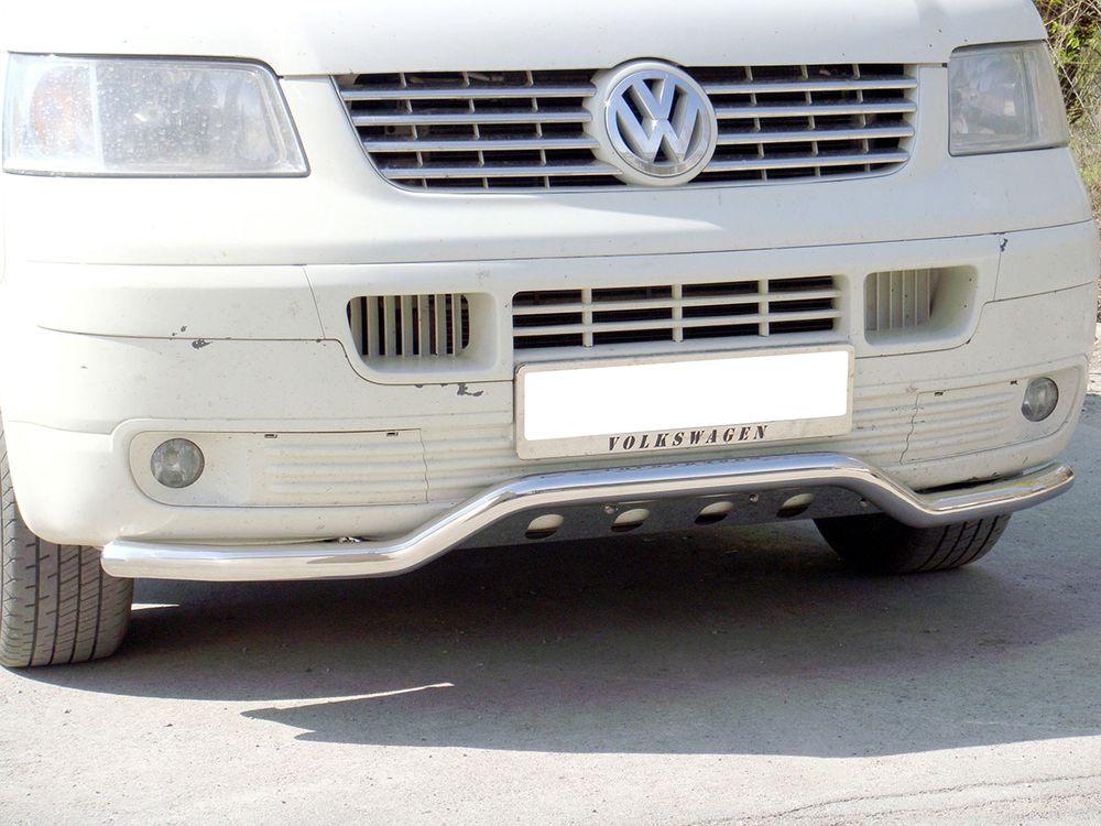 Дуга передняя по низу бампера Сити Гард широкие отверстия на защите для Volkswagen Transporter T5 2003, Технотек WLT5_1.1 изготовлена из высококачественной нержавеющей стали, труба имеет диаметр 53 мм. В комплекте поставляется набор крепежа и инструкция по установке.