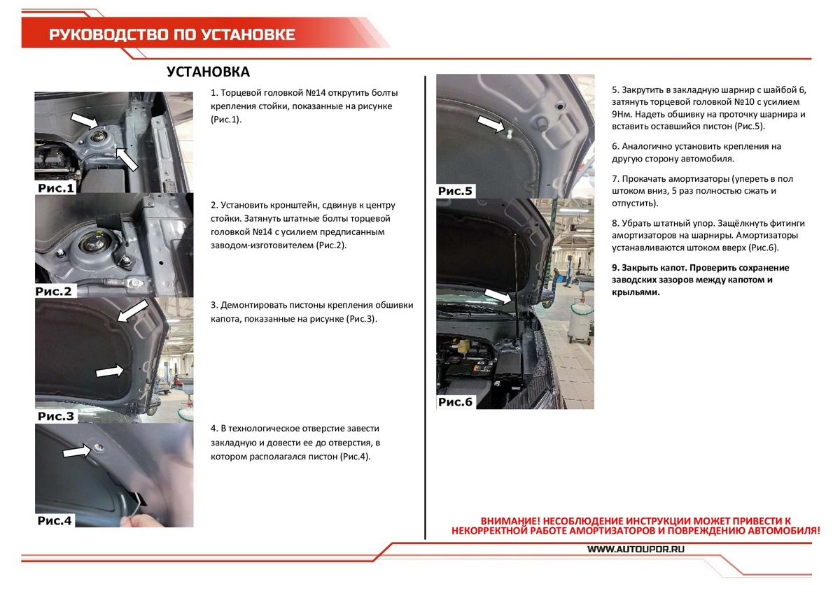 - Штатный угол открытия капота - благодаря индивидуальной разработке для каждого автомобиля.