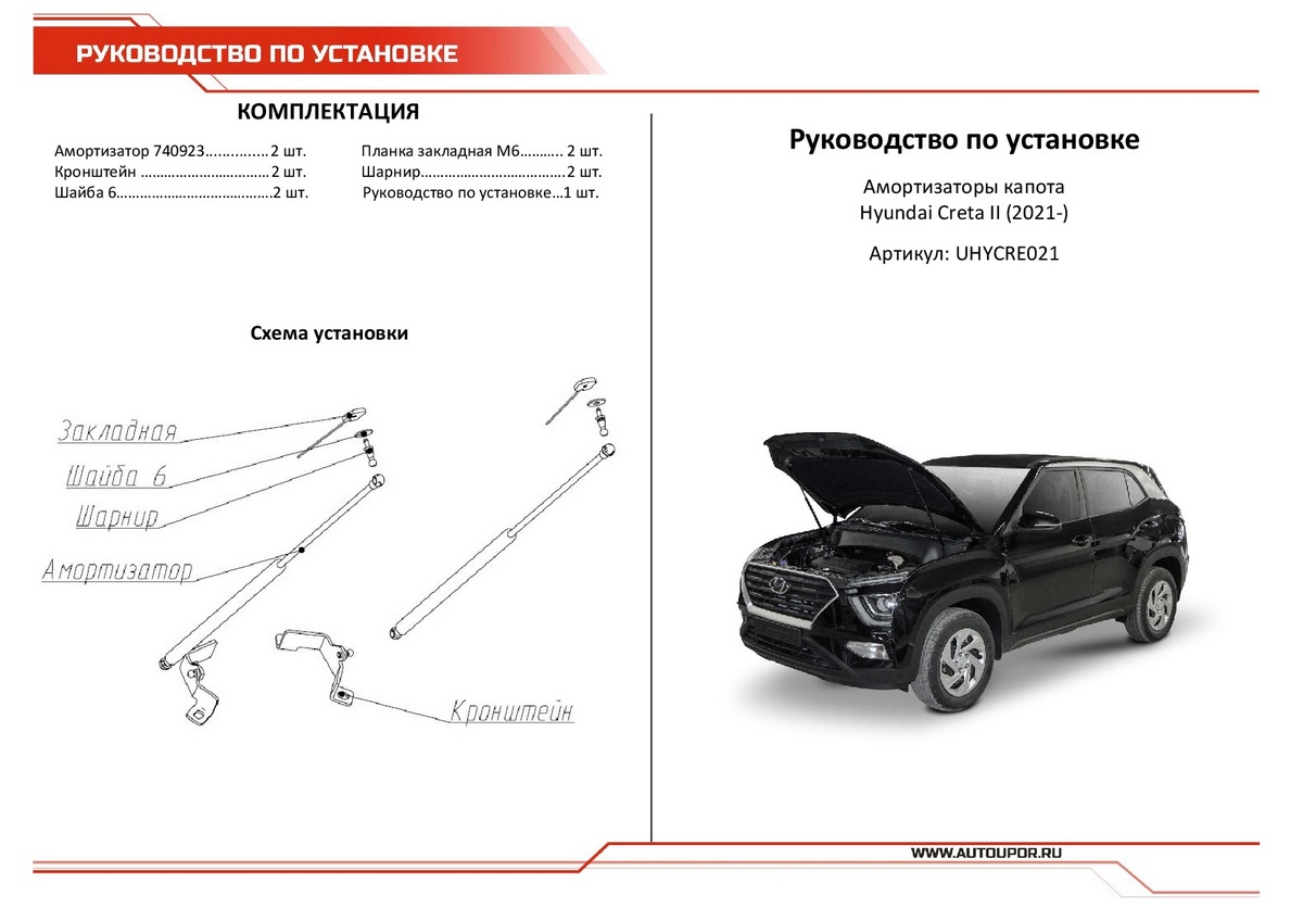 Амортизаторы капота АвтоУПОР (2 шт.) Hyundai Creta (2021-), Rival, арт. UHYCRE021 (дополнительное изображение 1)