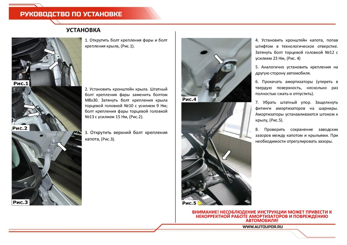 - Штатный угол открытия капота - благодаря индивидуальной разработке для каждого автомобиля.