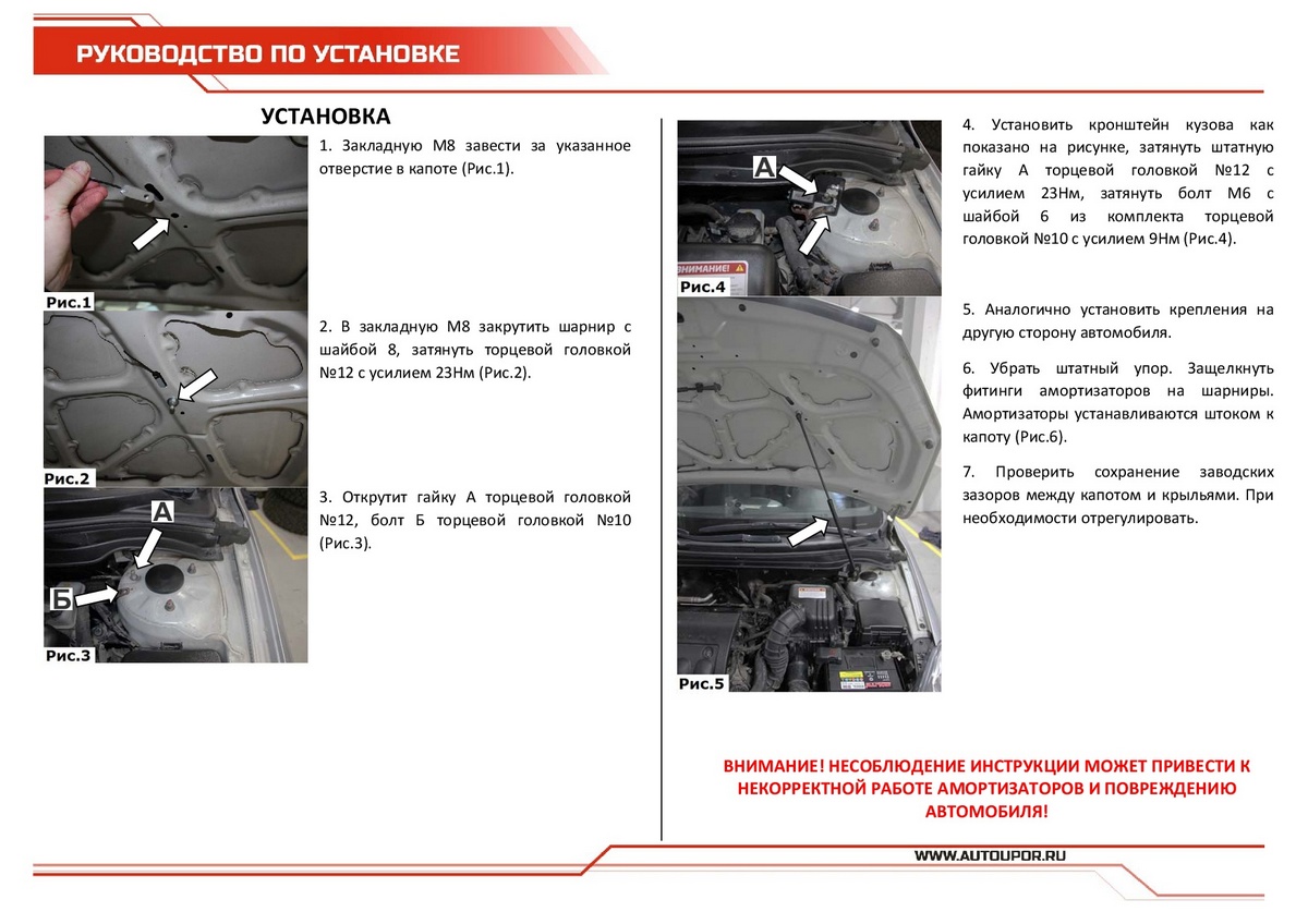 - Штатный угол открытия капота - благодаря индивидуальной разработке для каждого автомобиля.