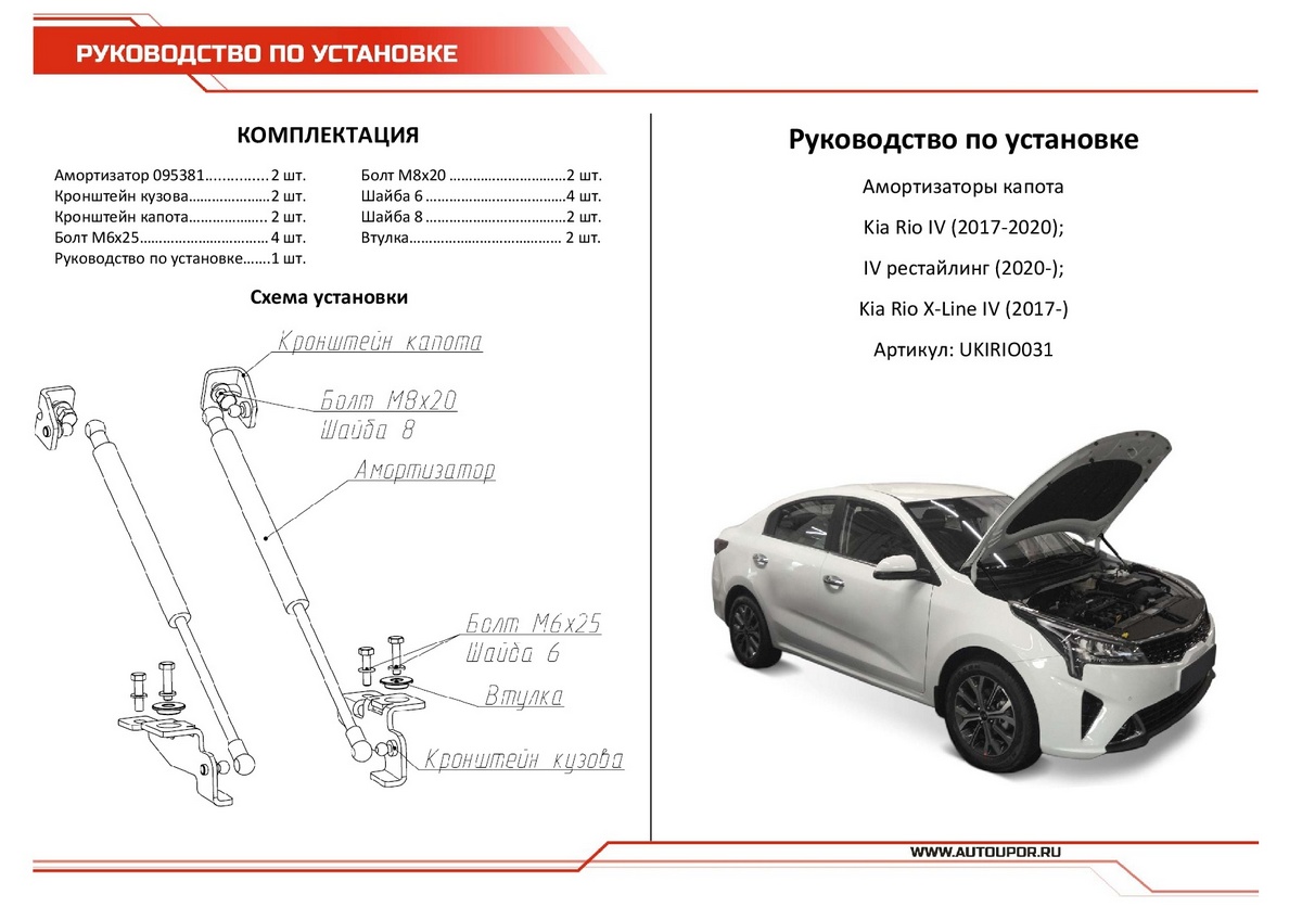 Амортизаторы капота АвтоУПОР Kia Rio / Rio X-Line (2017-2020; 2020-), Rival, арт. UKIRIO031