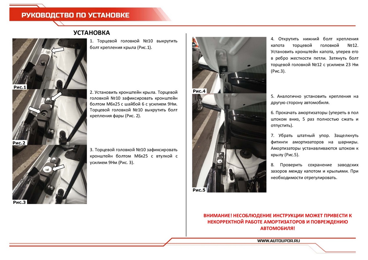 - Штатный угол открытия капота - благодаря индивидуальной разработке для каждого автомобиля.