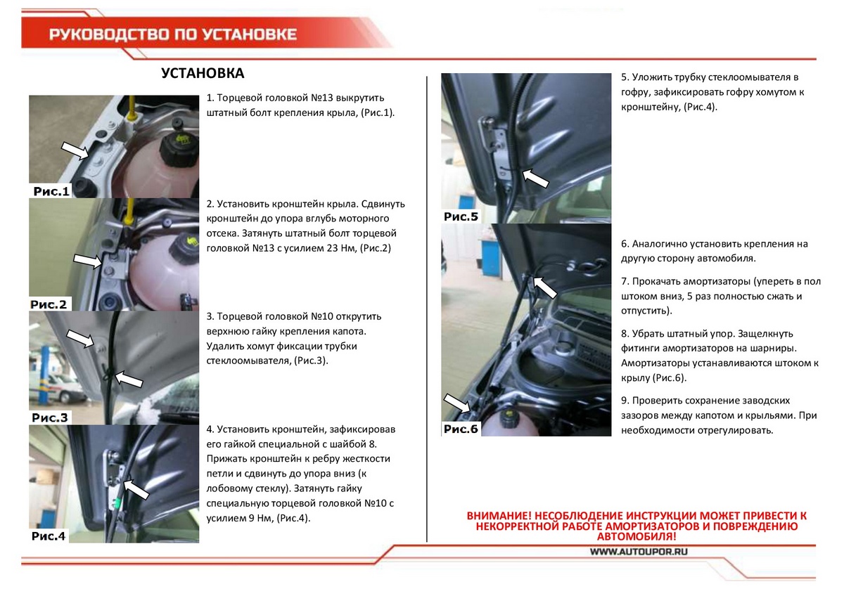 - Штатный угол открытия капота - благодаря индивидуальной разработке для каждого автомобиля.