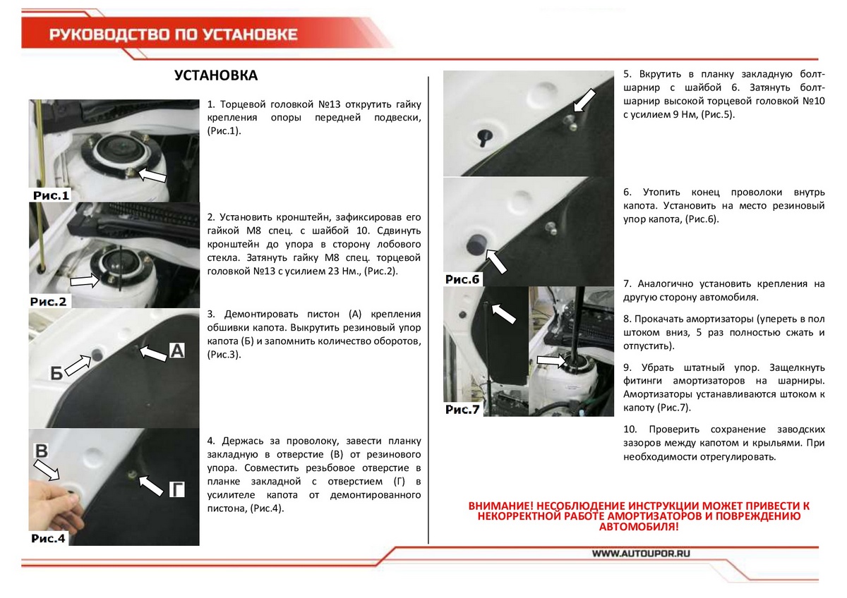 - Штатный угол открытия капота - благодаря индивидуальной разработке для каждого автомобиля.